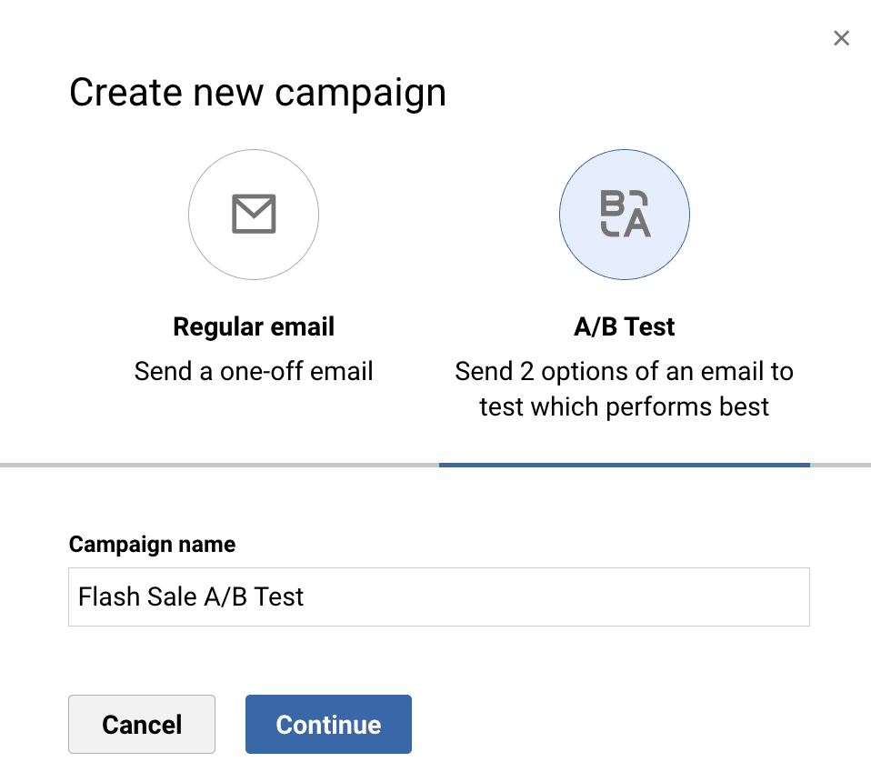 This is a great option to use when you want to see if one campaign style or product offering is a better choice than the other because you will get to see what your audience prefers without specifically asking them. You can also choose to just test the subject line if that is the only element you are curious about.
