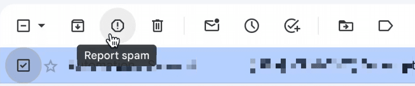 Most inbox providers include a prominent “This is spam” button in the inbox to allow people to report unwanted emails. Here’s an example “spam” button in a Gmail account: