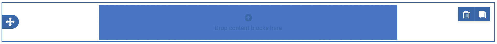 When rearranging rows in your mailing, you can add or move them above or below existing rows on the page, but not inside an existing row. If you want to place multiple blocks side-by-side, you’ll need to be working in a row with multiple columns. You can also adjust the number of columns in a row, which we will discuss below.