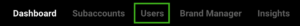 - If you’re in the parent account, click on the Users tab at the top of the screen. If you’re in a subaccount, click on the house icon in the upper right corner of the screen and select Users from the dropdown menu.
