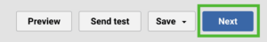Editor and Author users can create campaigns but cannot send them; instead, they need an Administrator or Full user to send or schedule campaigns for them. When you are finished creating a campaign, click the Next button, which will take you to the Review page.